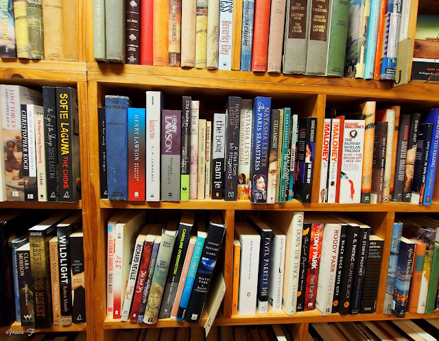 Walk past a book shop that is :) In Fremantle over the weekend we passed Elizabeth's Bookshop on South Terrace. I can't resist any of the Elizabeth's Bookshops, they lure me in with their promise of a book that I don't have but really need! Funny story.. there was a particular book that I thought about as I entered the store with no idea where to start looking.. my phone rang and I sat on one of the handy chairs scattered about, couldn't believe my eyes when there, below.. right in front of me was THE book.. can you guess which one it was?