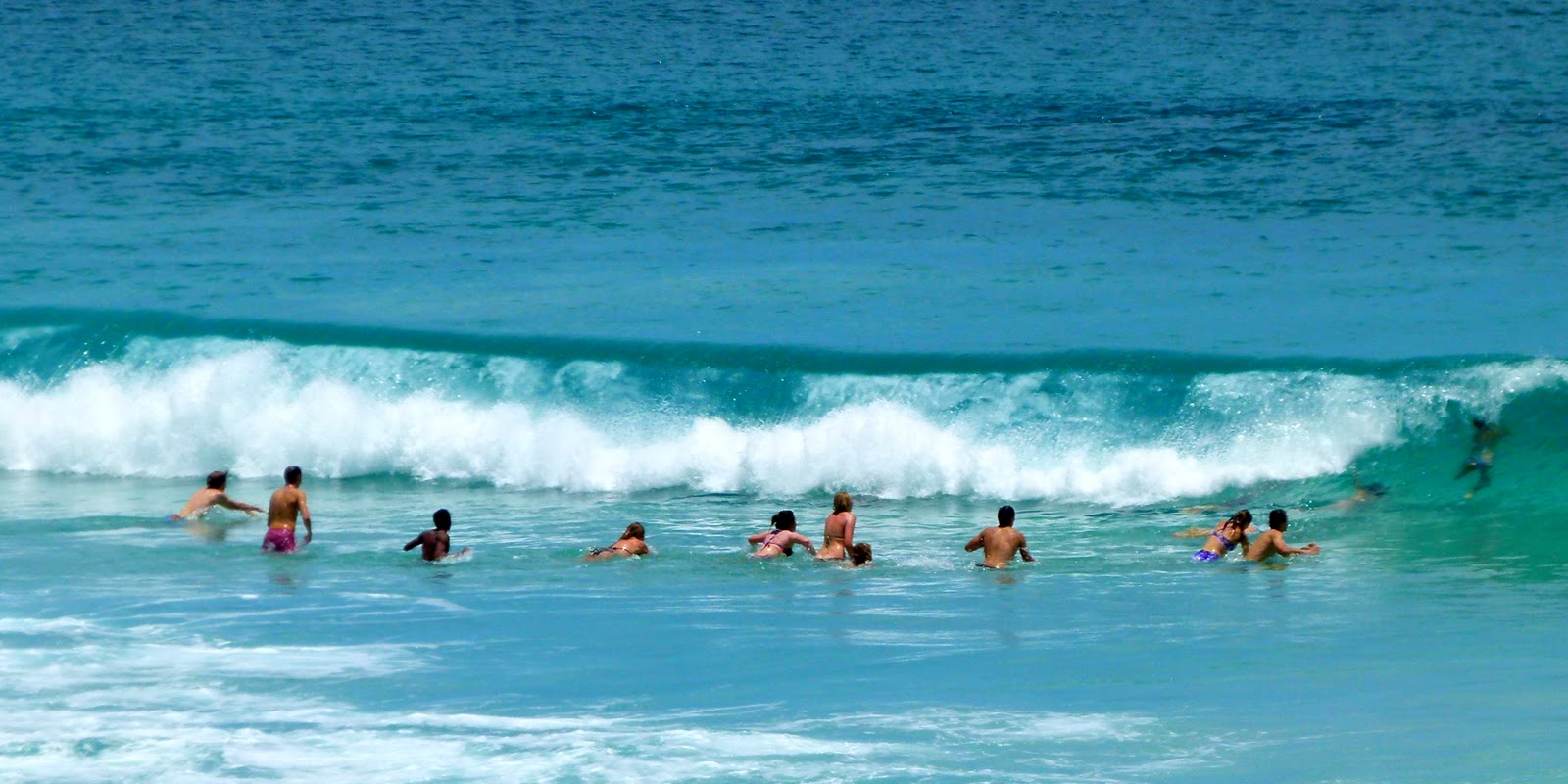 This group of young people arrived at the beach en masse and all dived into the water with great enthusiasm! It wasn't actually all that warm 25C so I'm guessing they weren't locals, maybe visiting from cooler climes, they were certainly enjoying themselves enormously, trying to pick the right waves to 'body surf' and ducking under the waves that were too big.....