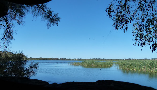 This was the view from the Balgay bird hide at Herdsman Lake, it was late morning and the sea breeze had already come in whipping up the water! So here's the thing, I'm pretty sure that to successfully spy the many, more than I ever realized birds that live in this fabulous swampy environment, you would have to be here a heck of a lot earlier than we were...on saying this, and you will have to take my word for it, but I'm pretty sure this body belongs to the Purple Swamphen, there was definitely a flash of brilliant red before it disappeared into the reeds, truly!