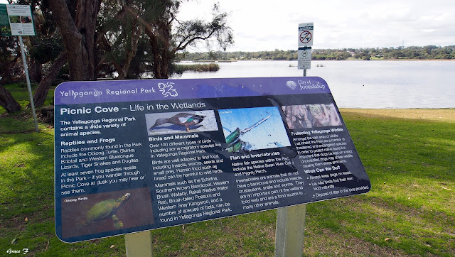 Thank goodness that there are these short breaks between the storms.. just enough time for a quick walk around the lake at Picnic Cove. The water level in the lake has risen considerably since our last visit. I don't think I've seen as many black swans altogether in one spot like this. It's the first time I've noticed the turtle crossing a few shots down, if you check out the sign there is abundant water life going on in and around these wetlands. Looks like we are in for more of the same this week with hopefully the odd appearance of a blue sky. Hope you had/are having a fab weekend, happy Monday,take care and stay safe..