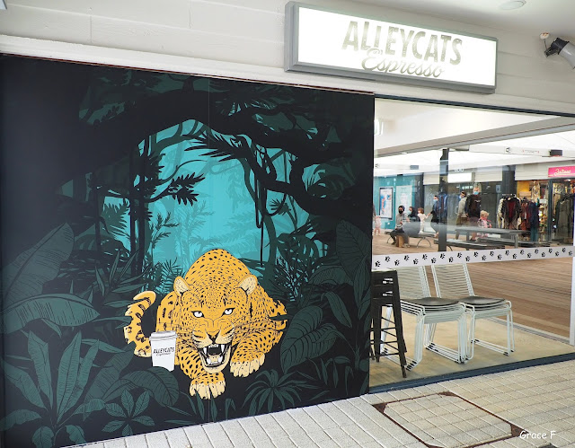 Great mural of a fierce alleycat and that promises a great espresso coffee.
